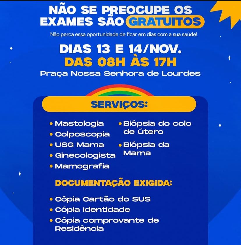 Durante esses dois dias, das 08h às 17h, a Praça Nossa Senhora de Lourdes será palco da chegada da Carreta da Mulher, um importante equipamento itinerante que oferece exames gratuitos de prevenção e diagnóstico, reforçando o compromisso do município com o cuidado e a atenção integral à saúde feminina.
